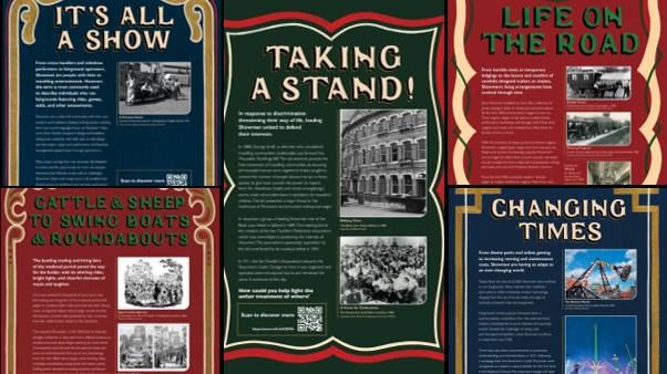We subsequently segmented these interviews and decided on the eight themes we would incorporate into the oral history section of the exhibition. In order to decide on the five new themes for the interpretation panels, we also formed a focus group consisting of ten members of the Showmen community, brought together by Sheldon, ensuring the community were active partners and shaped the narrative.