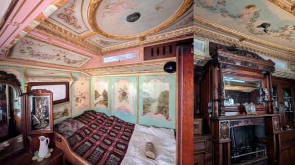 Shortly after being appointed as Collections and Interpretation Manager at Avoncroft in early 2022, I was taken on a site tour by the Director, Zoe Willems. As part of our walkaround, I was led into a non-descript building to be shown a collection of bricks. (As you can likely appreciate, my expectations were low!) However, upon entering, I was immediately presented with a beautiful, ornate Showman’s living wagon, complete with detailed etched glass, rich mahogany furnishings, and hand-painted ceilings; I was captivated.