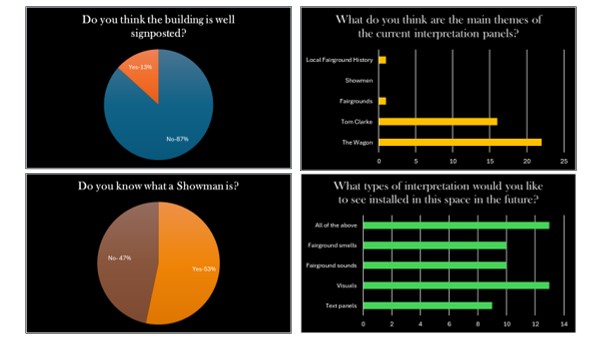 With the support of volunteers, I began to survey visitors and capture their views on a number of areas, including on the wagon and the building it is housed, the existing interpretation, their understanding of Showmen and fairgrounds, and what they would like to see introduced as part of a future interpretation project. These surveys helped to reaffirm my views, inform the project proposal, and strengthen our subsequent funding bid.